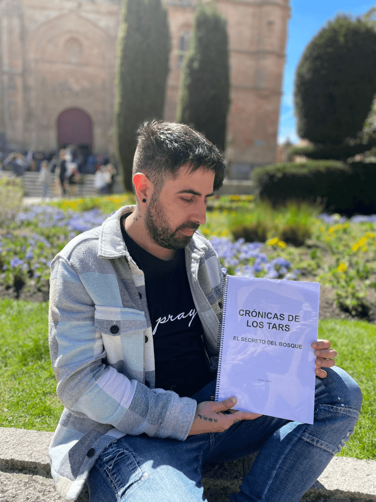 Jorge Mayo con su manuscrito ‘Tars: El secreto del bosque’.